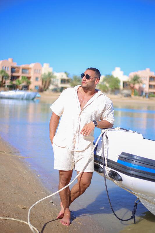 Beige LINEN SHORTS SET