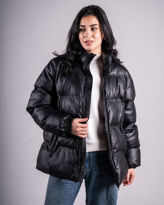 Faux Leather Puffer Jacket